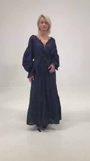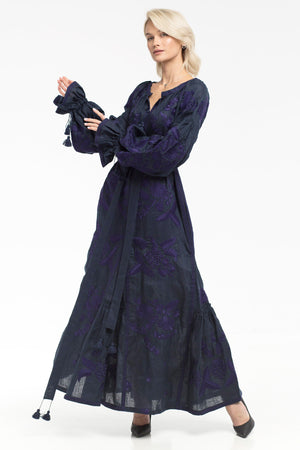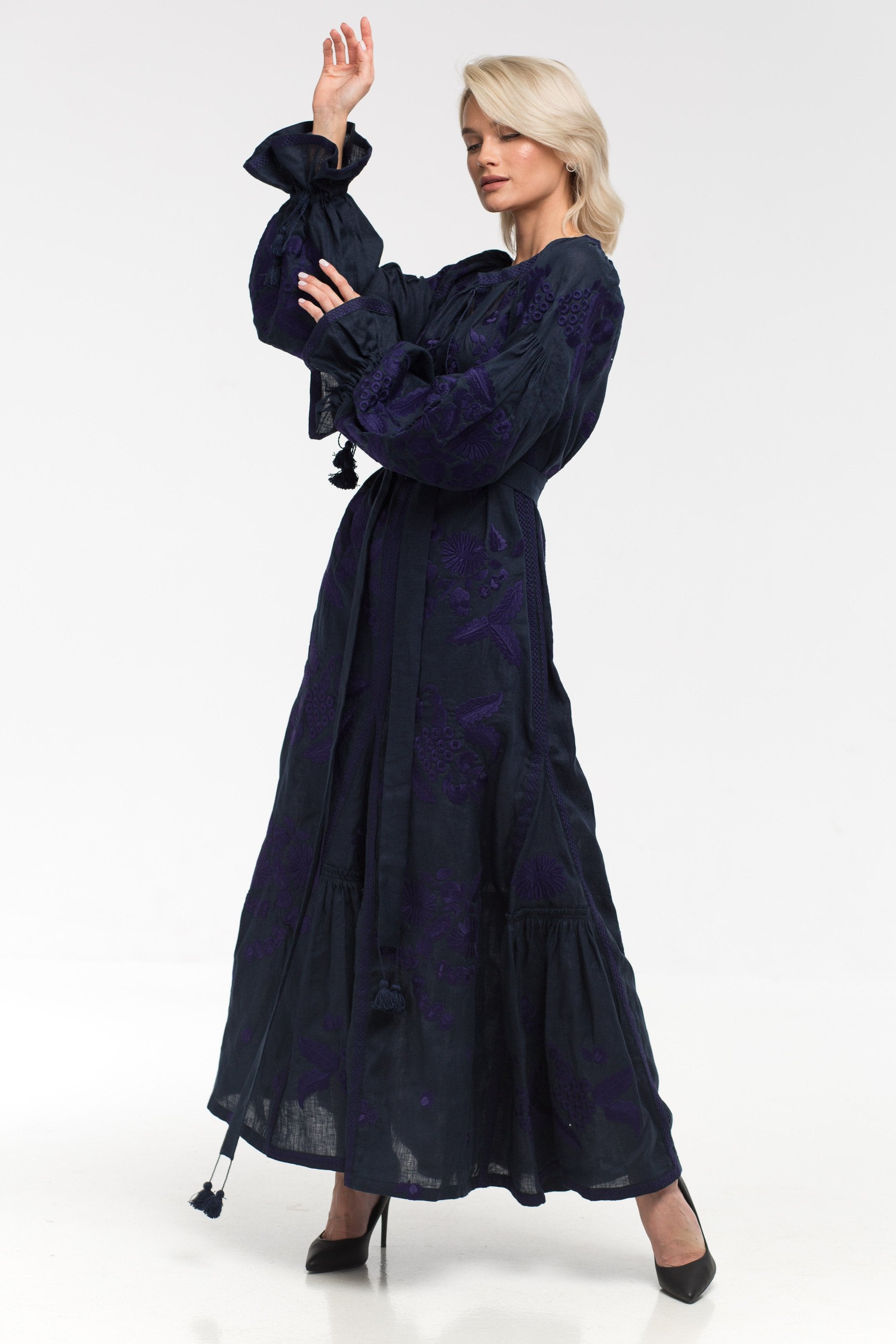 Linen embroidered dress with grapevine embroidery Ukrainian wedding guest outfit