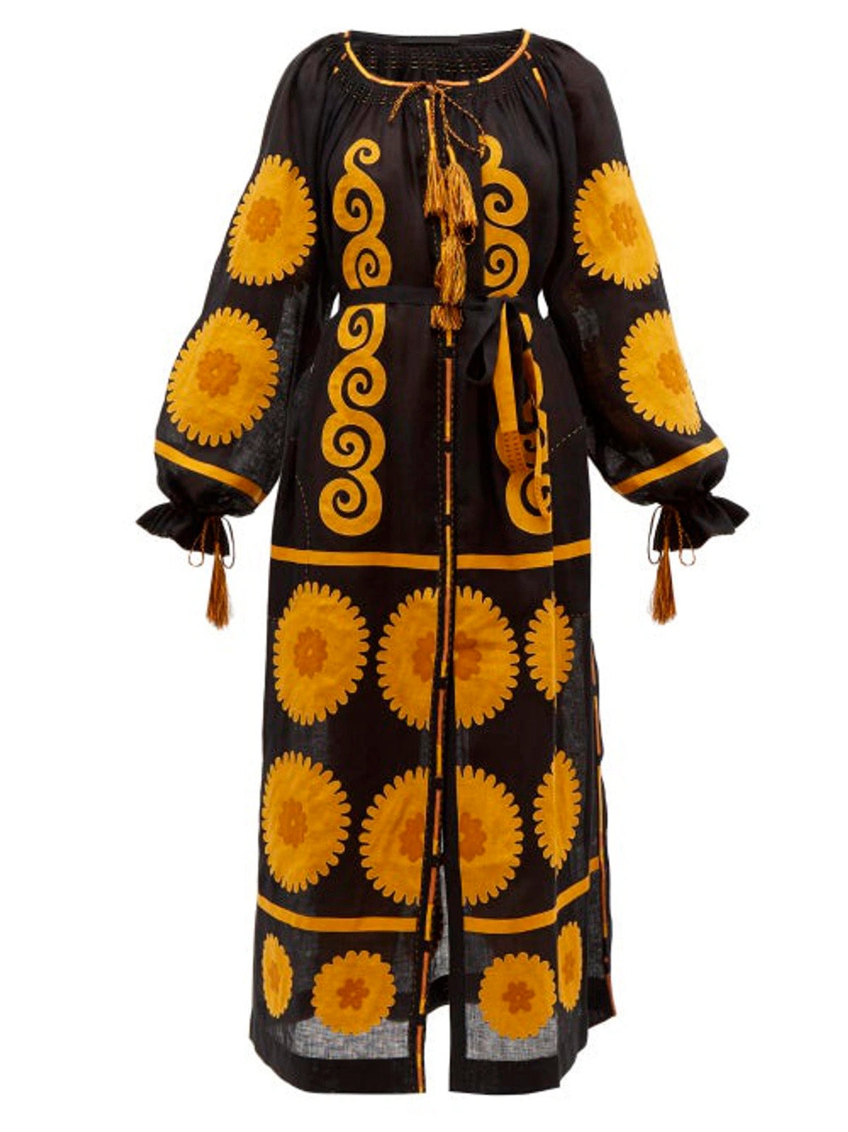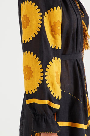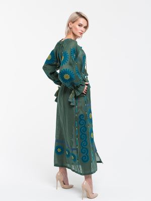 Applique embroidered linen dress Boho summer robe