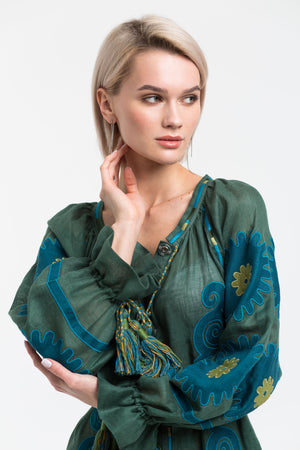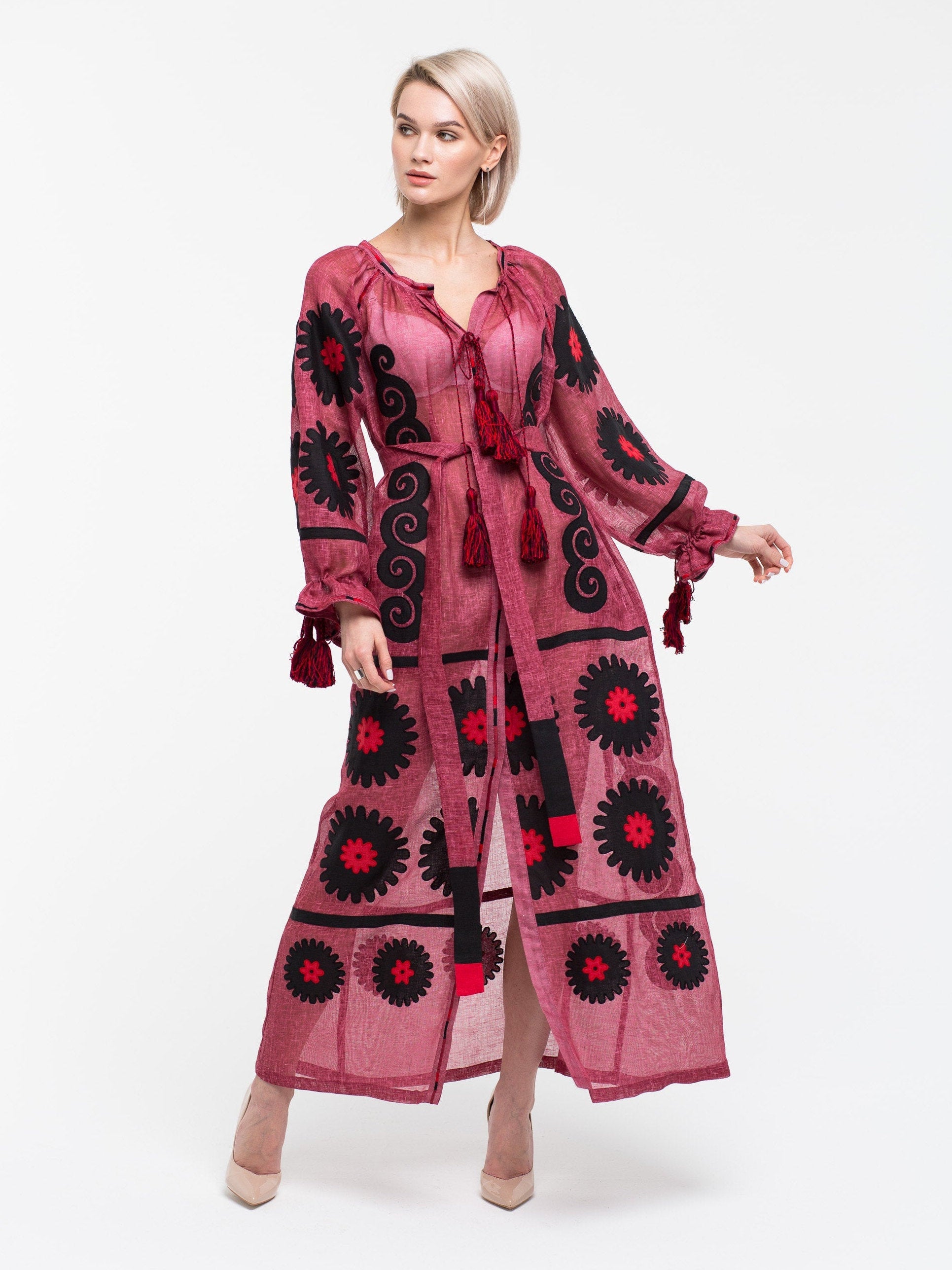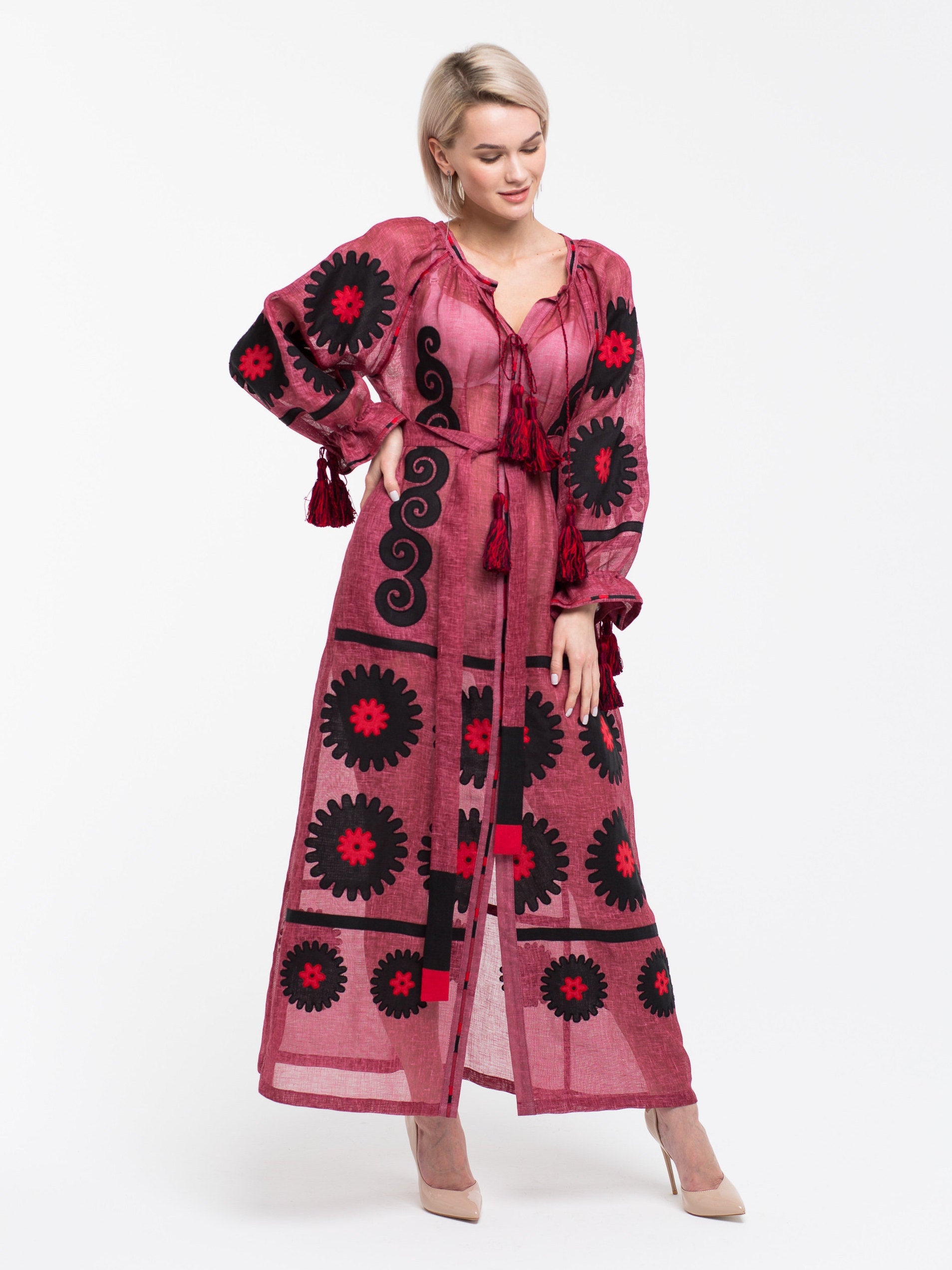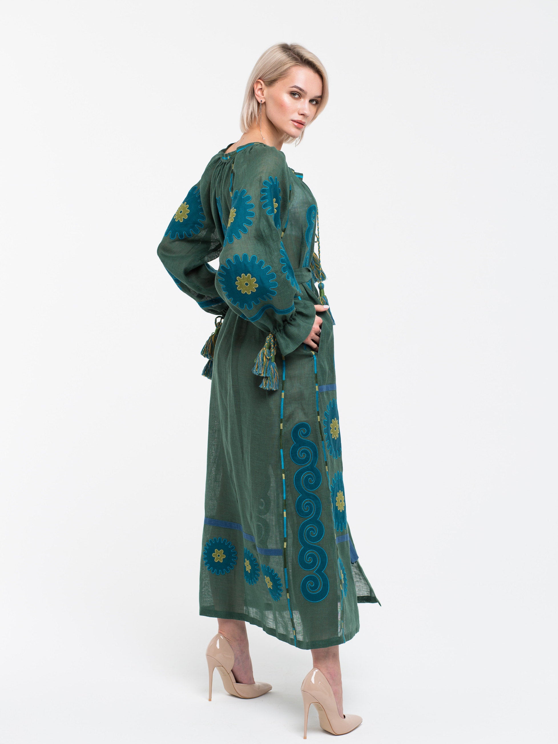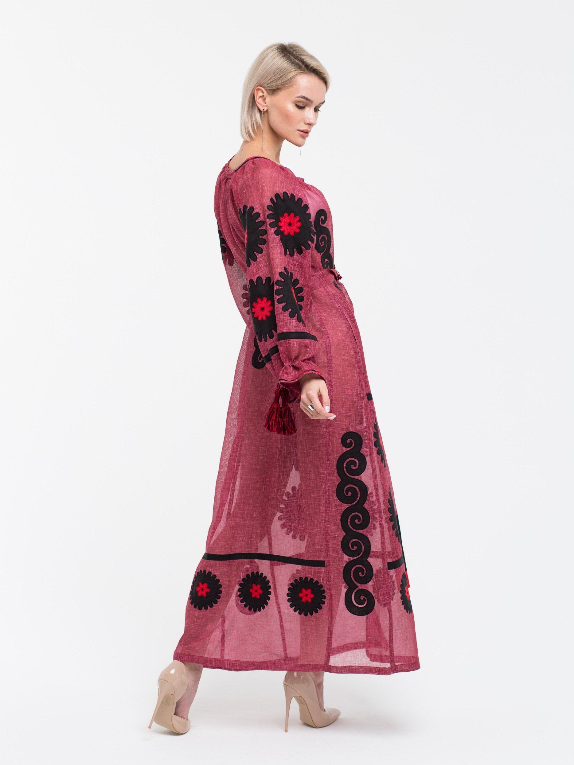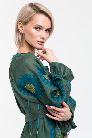 Celebrate your special day in an embroidered linen dress that combines tradition and modernity. Crafted by Ukrainian artisans, its unique vyshyvanka-inspired details and timeless silhouette make it a perfect choice for a memorable birthday celebration.