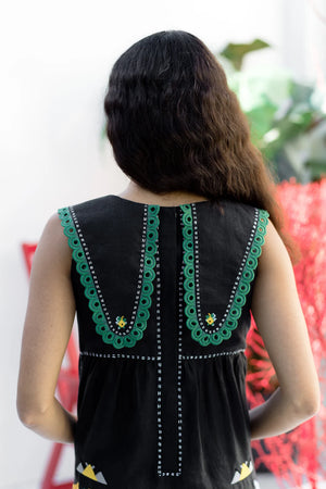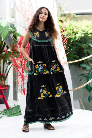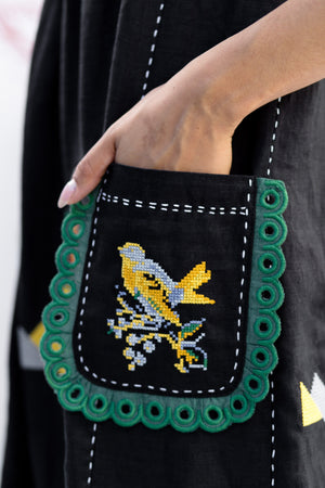 Birds embroidered dress Ethnic vyshyvanka robe with scalloped collar