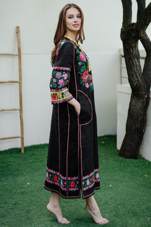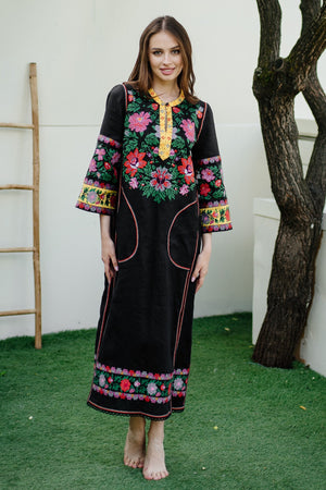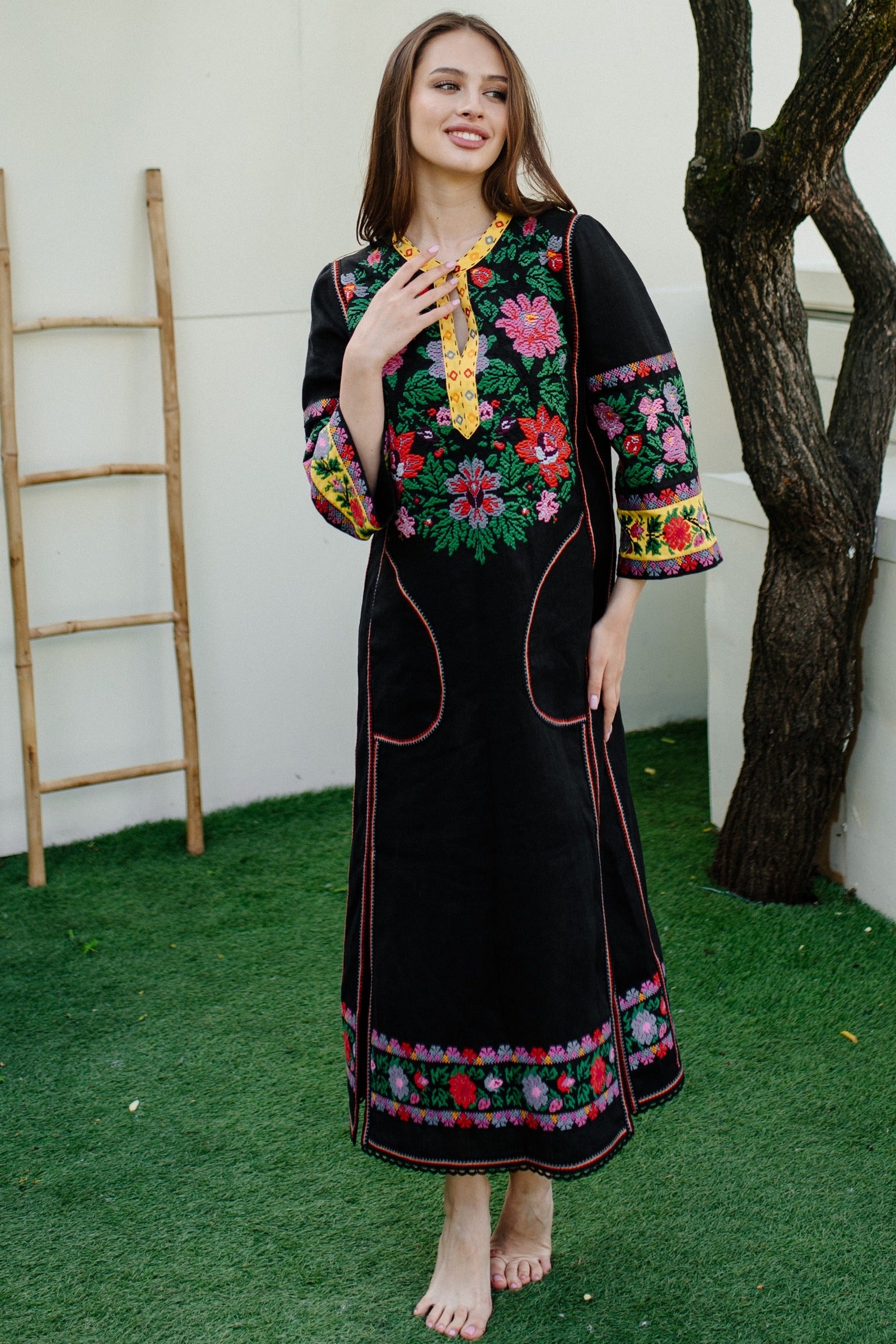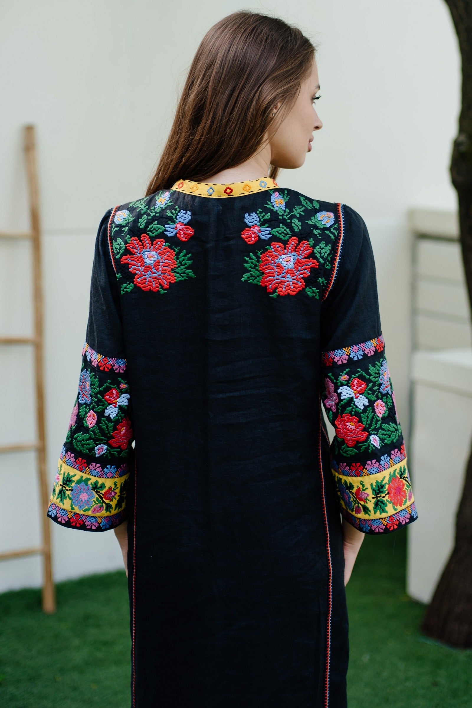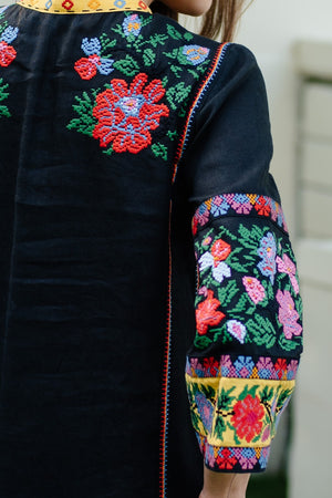 Lulu black embroidered dress Linen Ukrainian fashion vyshyvanka