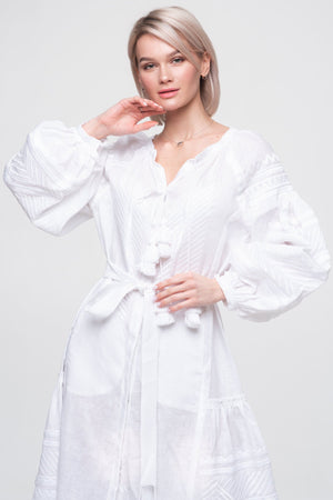 Include your chest and height measurements when placing your order for this embroidered white dress.