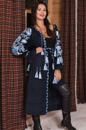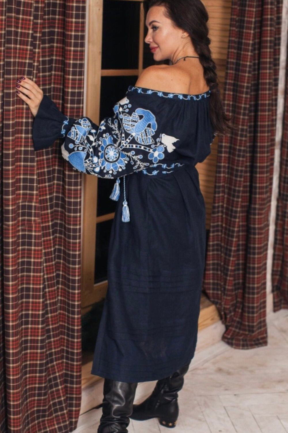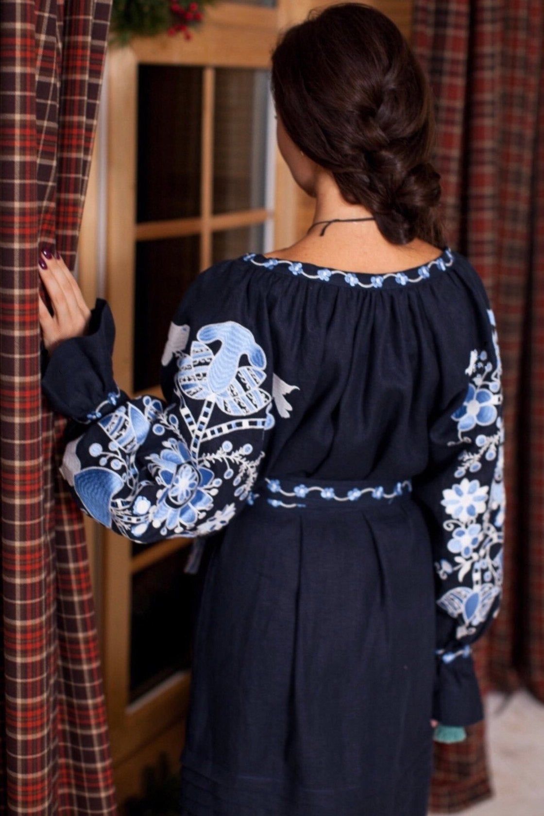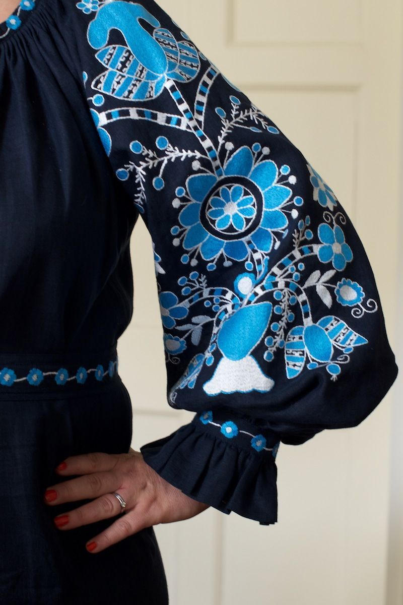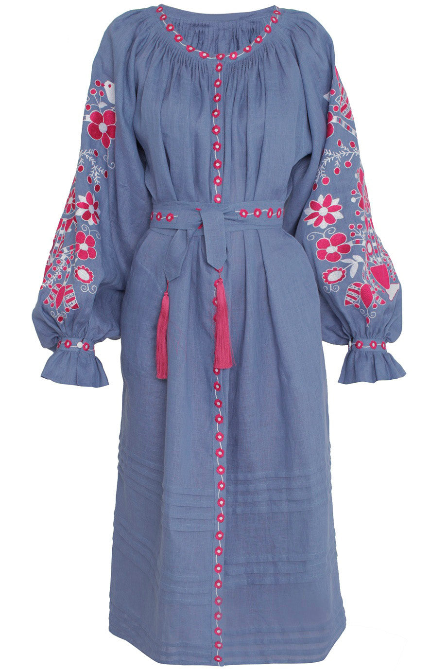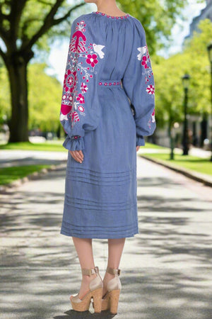 Sunflower embroidered kaftan Ukrainian midi vyshyvanka dress