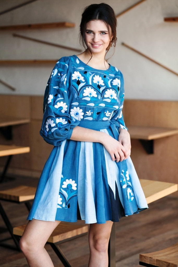 Casual floral embroidered mini dress Vyshyvanka bohemian summer gown