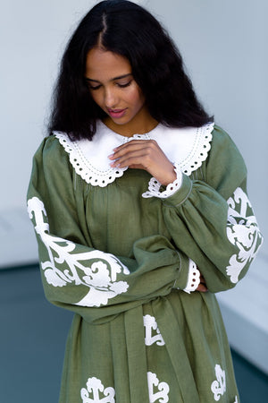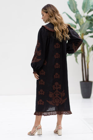 Elevate your vacation wardrobe with an embroidered linen dress that captures the essence of summer. Handmade by Ukrainian artisans, its combination of traditional craftsmanship and contemporary style will make you stand out wherever you go.