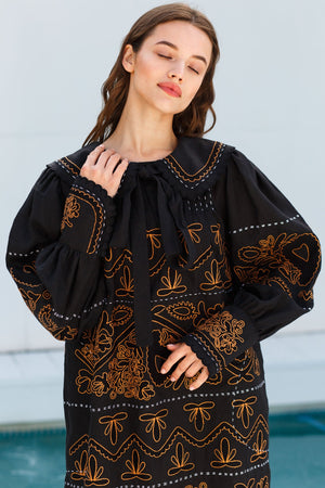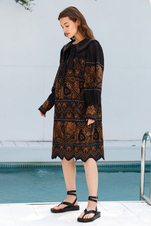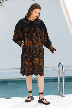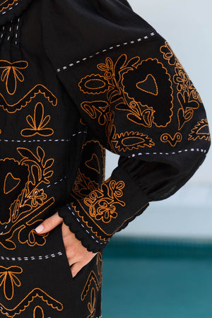 Indulge in the exquisite artistry of our handcrafted linen dress, adorned with intricate embroidery and featuring luxurious pockets and a stylish belt. This masterpiece is expertly crafted from 100% linen to provide the utmost comfort and sophistication. This elegant dress is designed to flatter all body types, and can be styled with or without a belt. It effortlessly exudes urban chic and vacation vibes.