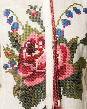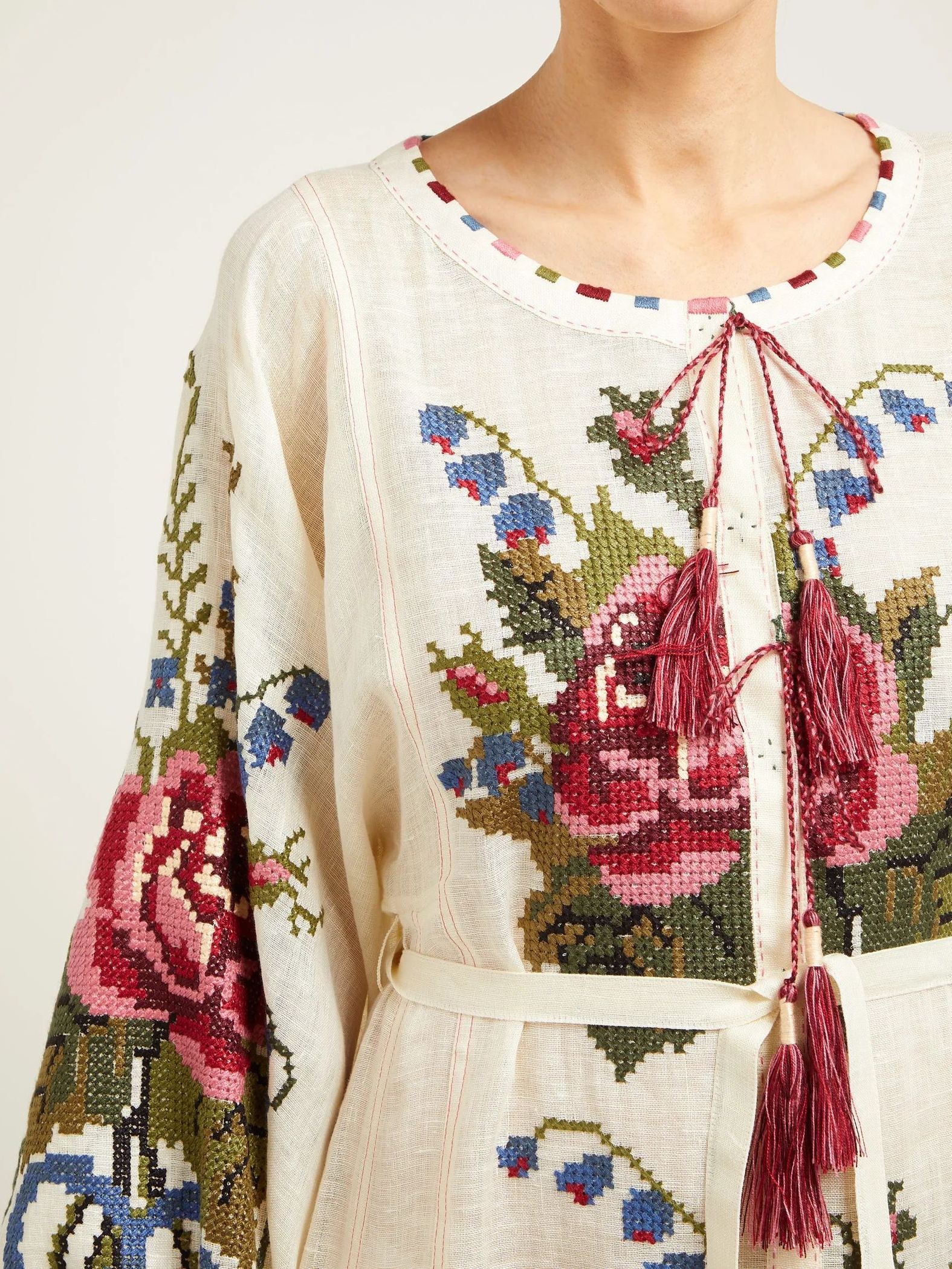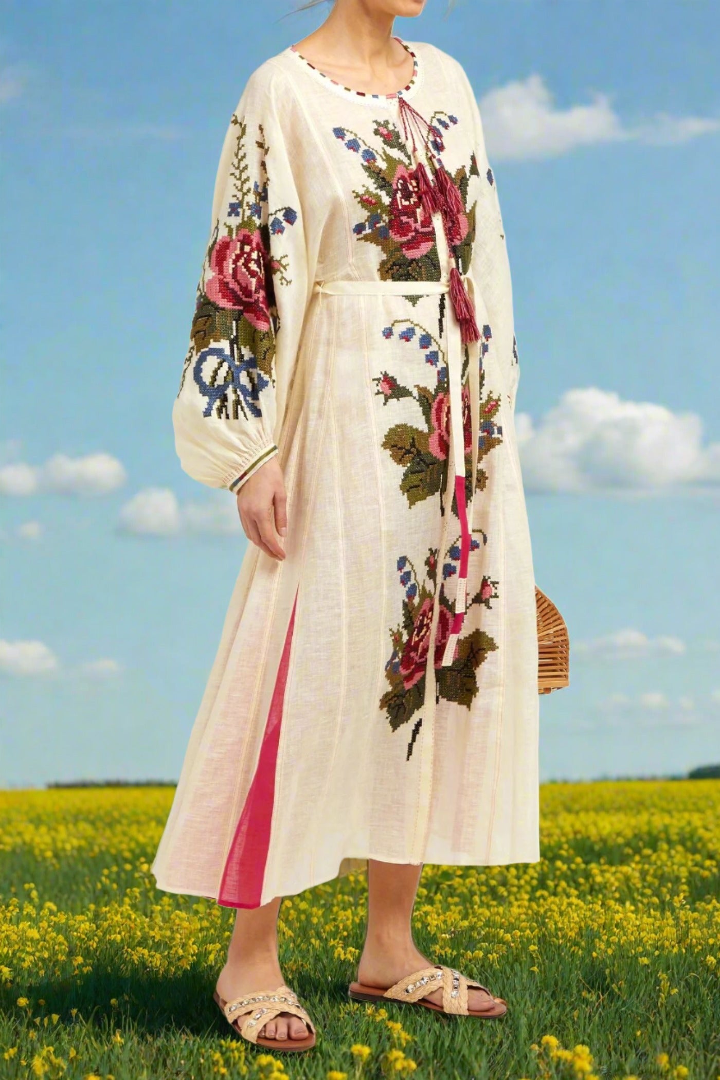 Roses embroidered boho dress Ukrainian wedding kaftan