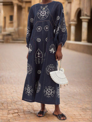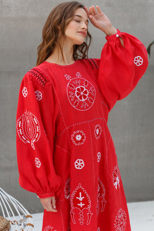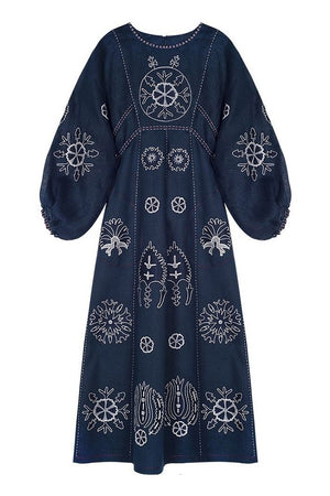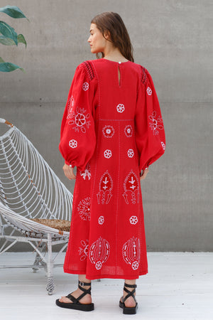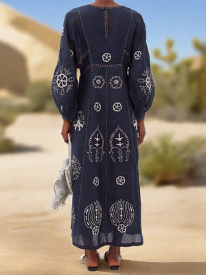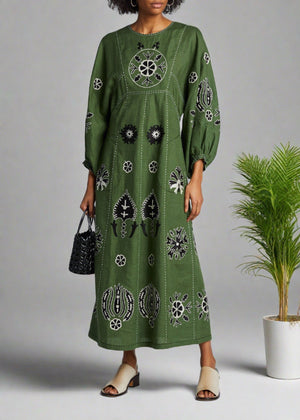 Embroidered boho dress Jasmine embroidery linen kaftan