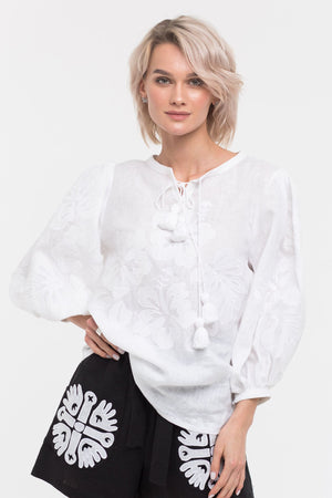 Experience the elegance of our linen blouse, embellished with exquisite Ukrainian embroidery. This versatile and effortlessly chic piece exudes a bohemian charm and can be customized to match your style in a selection of stunning colors. Own a work of art, meticulously handcrafted just for you.