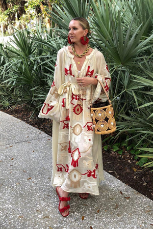 This ivory linen dress showcases a flattering deep V-neckline, functional pockets, a chic belt, and charming tassels. Crafted from 100% linen, this exquisite bohemian beach gown can be personalized in color and length to fit your individual style.