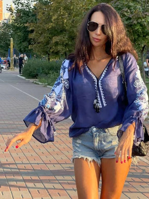 Ethnic embroidered linen blouse Gauze vyshyvanka shirt