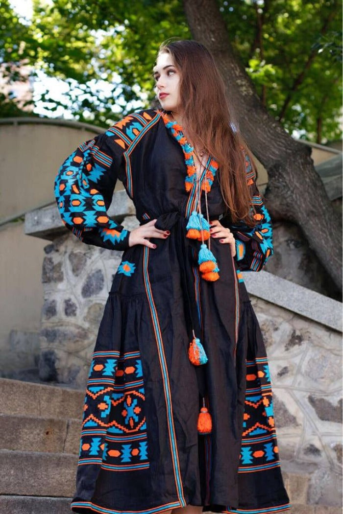Embroidered linen dress Fashion boho outfit vyshyvanka