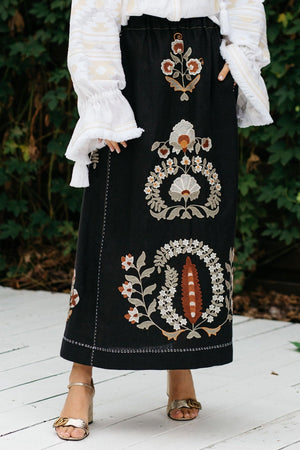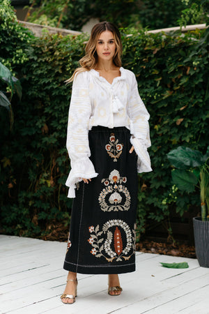 Sale price$198.00 USD - Linen embroidered midi skirt
