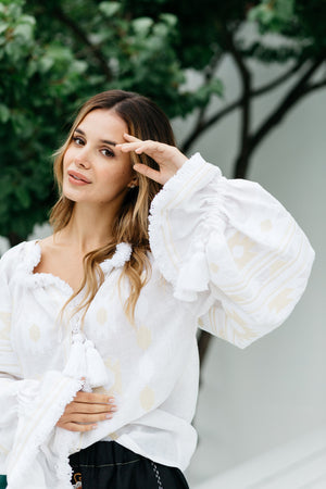 Discover the refined sophistication of this set, exquisitely made from 100% linen and embellished with intricate embroidery. Whether for a wedding, vacation, fashion event, or any other special occasion, these gorgeous garments are guaranteed to make a lavish impression.