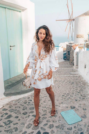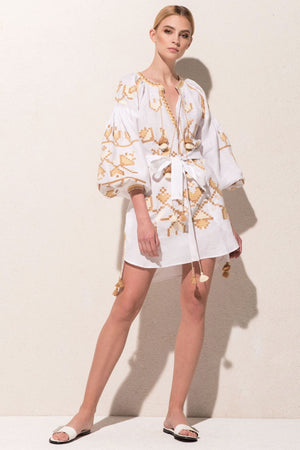 Flora embroidered linen tunic Vyshyvanka dress with Ukrainian embroidery
