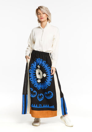 Unique vyshyvanka skirt, color block linen boho skirt crafted from 100% linen with pockets and elastic waist. Plus size embroidered fashion skirt available to order in any colors or length.