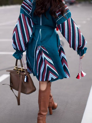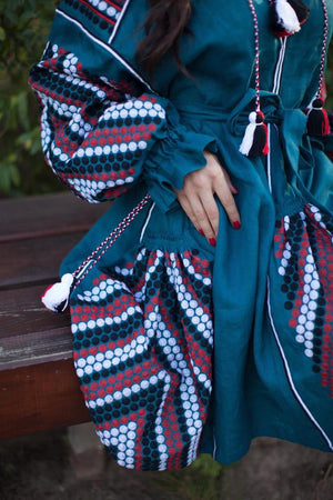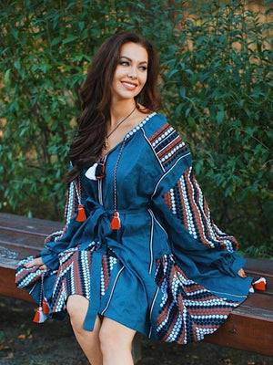 Shop beautiful and unique boho chic dress, bohemian dress for women with long sleeve and tassels. Choose rare and custom made oversized tunic, vyshyvanka in sea wave color.