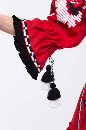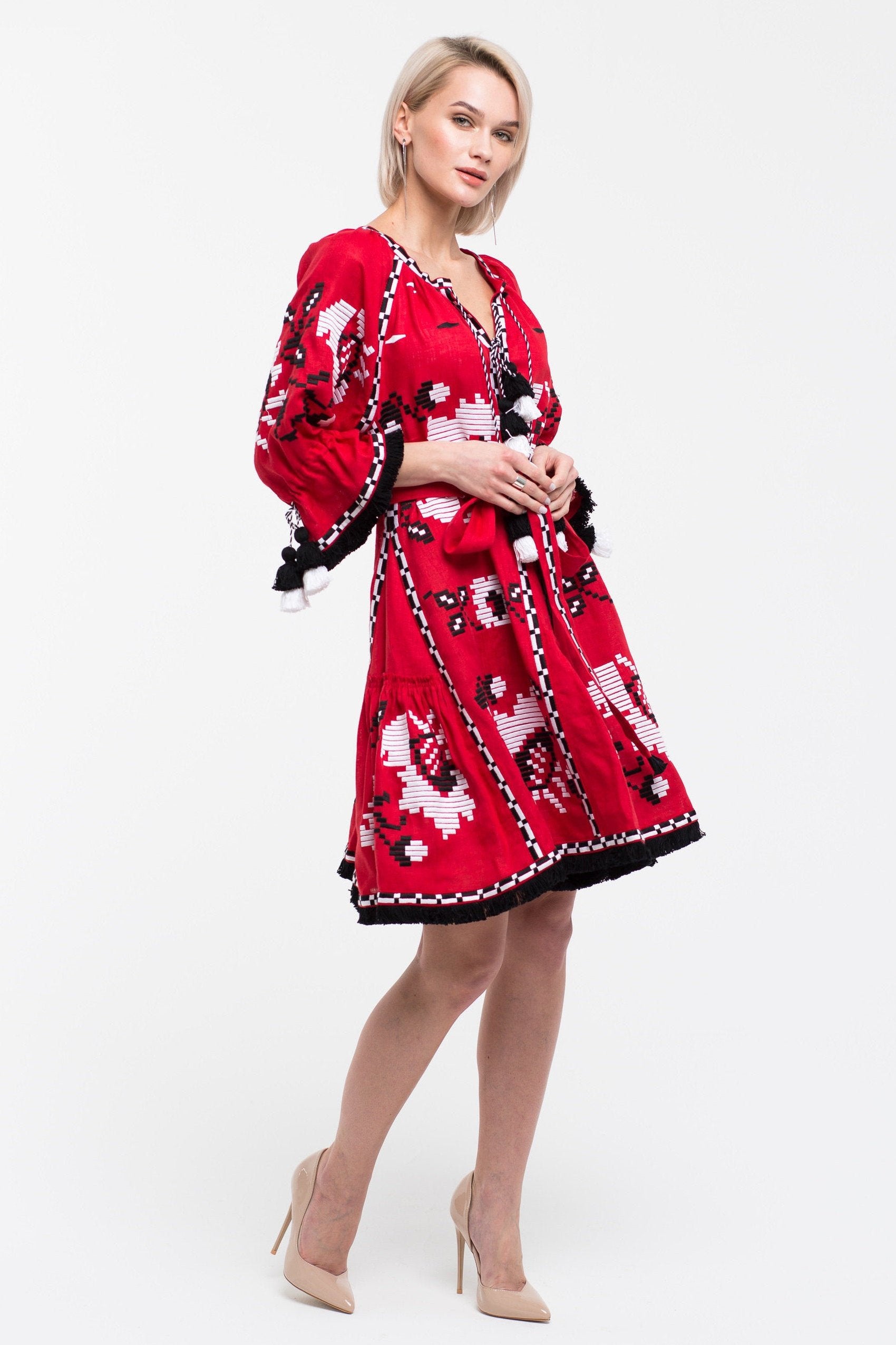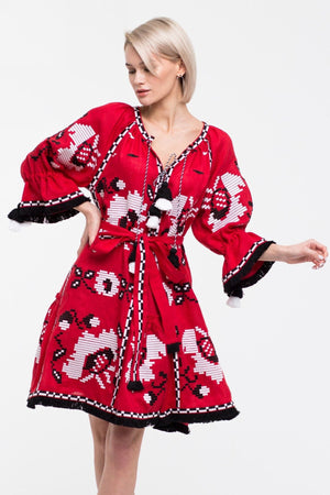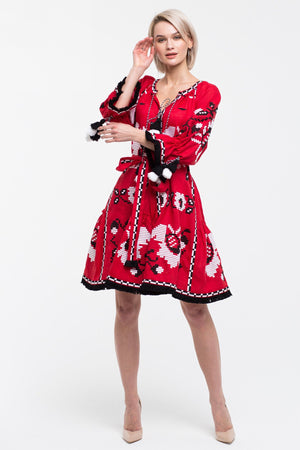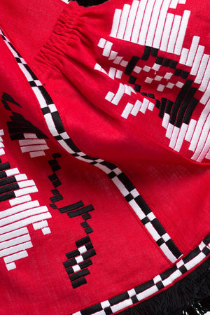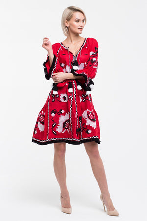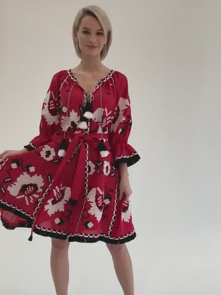 Floral embroidered red linen dress Bohemian outfit
