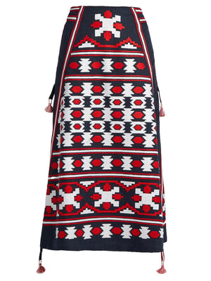 Discover the unique craftsmanship of our black linen peasant bohemian skirt, embellished with striking white-red ethnic embroidery. Featuring a hidden side zipper and an elegant a-line silhouette, this embroidered linen skirt is sure to make a statement.