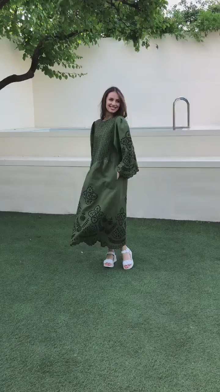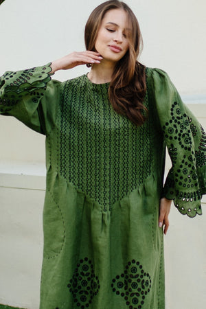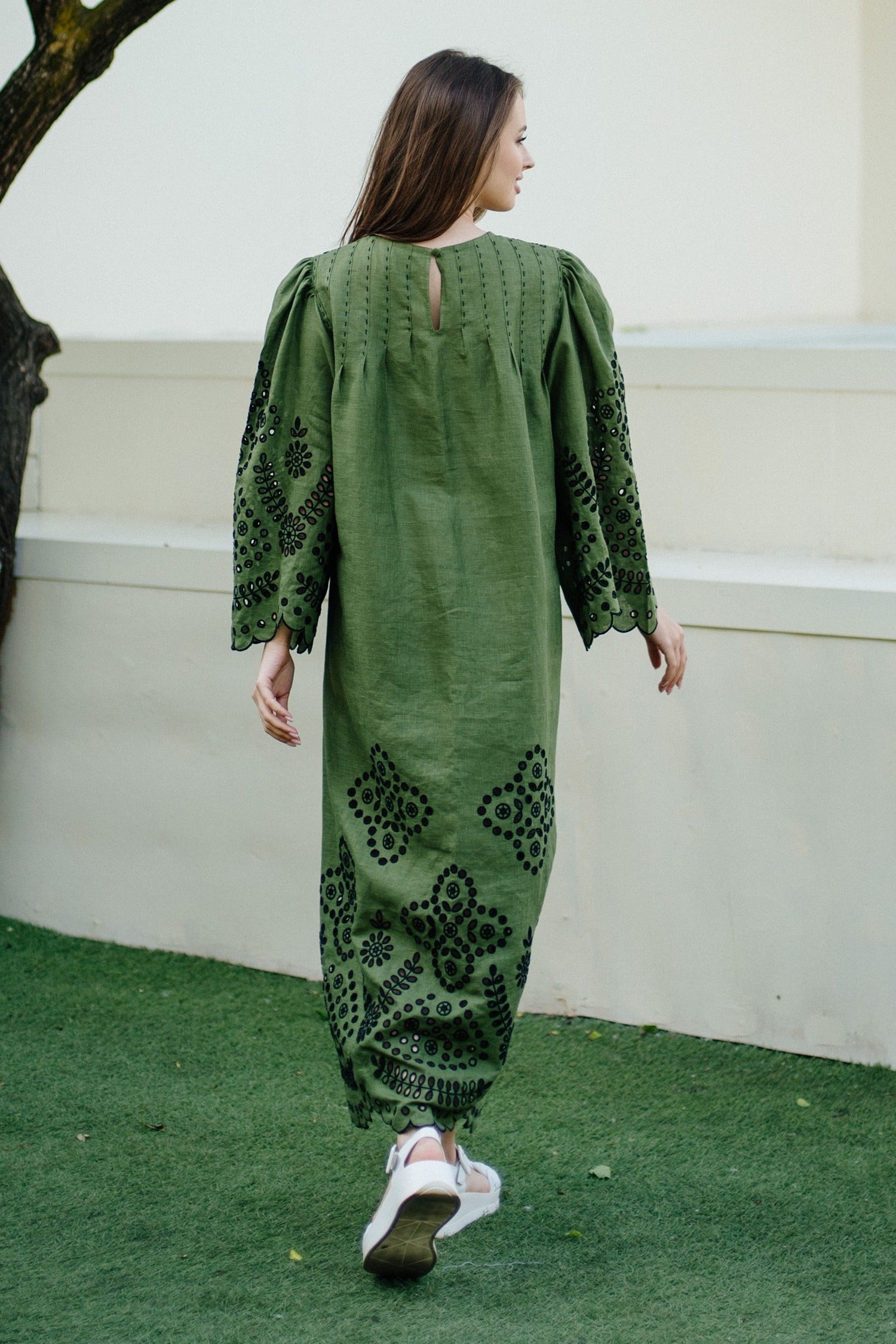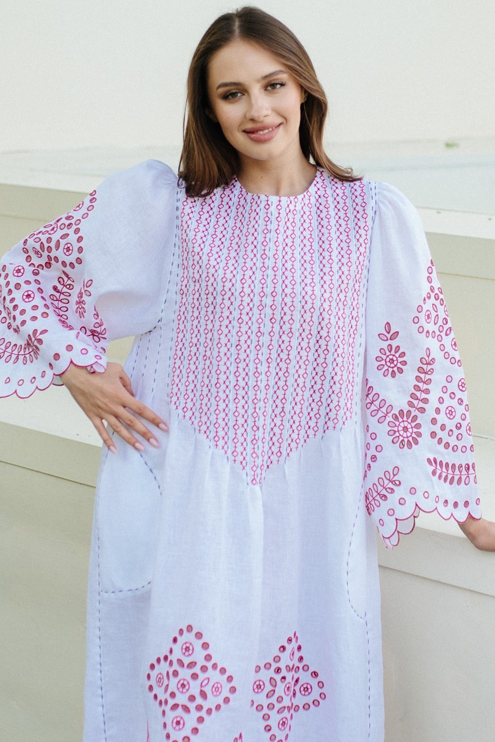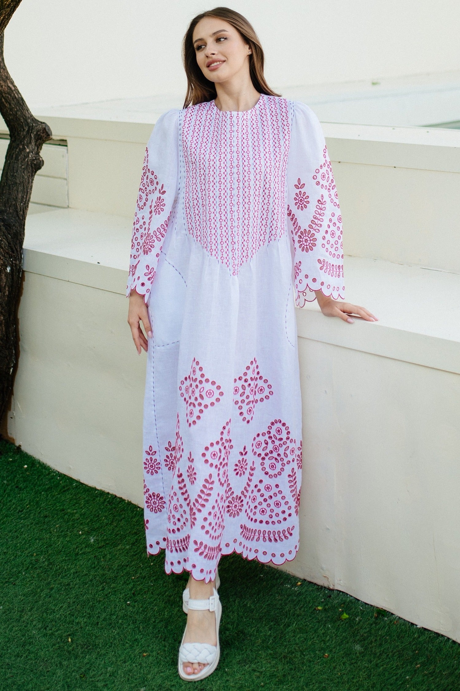 Loose richelieu embroidered dress Ukrainian fashion linen dresses