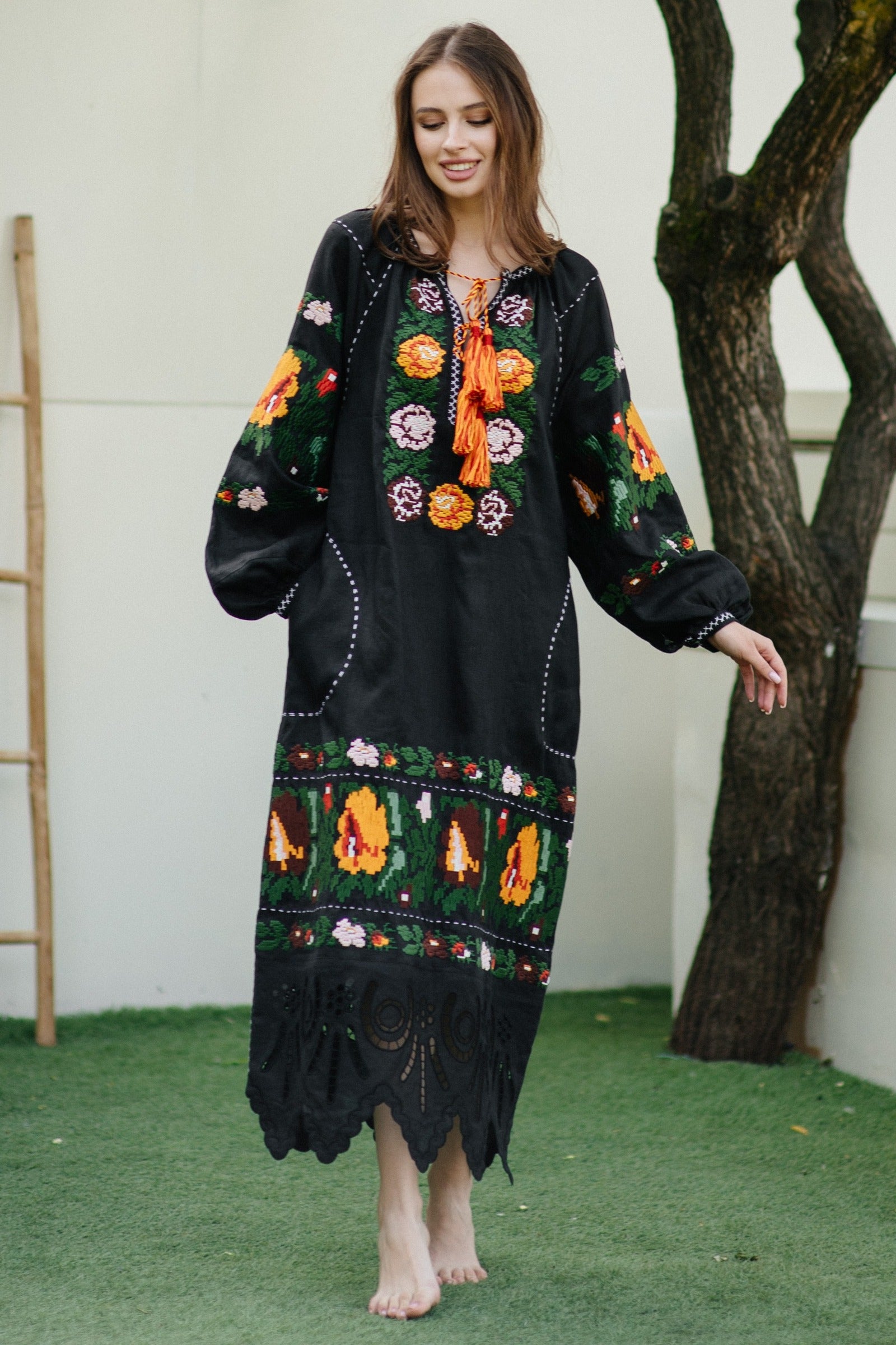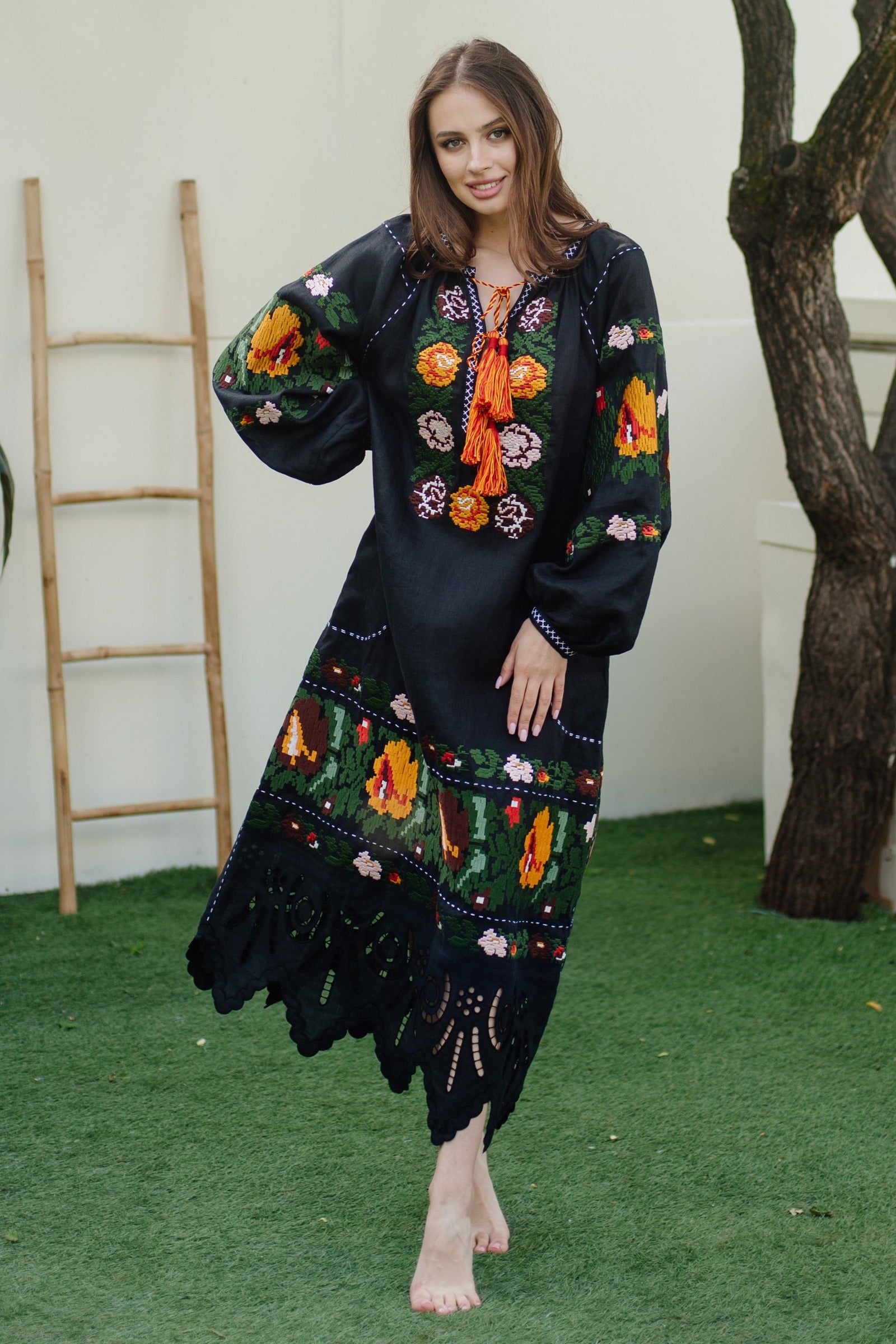 Mariana embroidered linen dress Richelieu ukrainian fashion gown