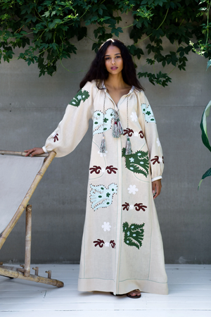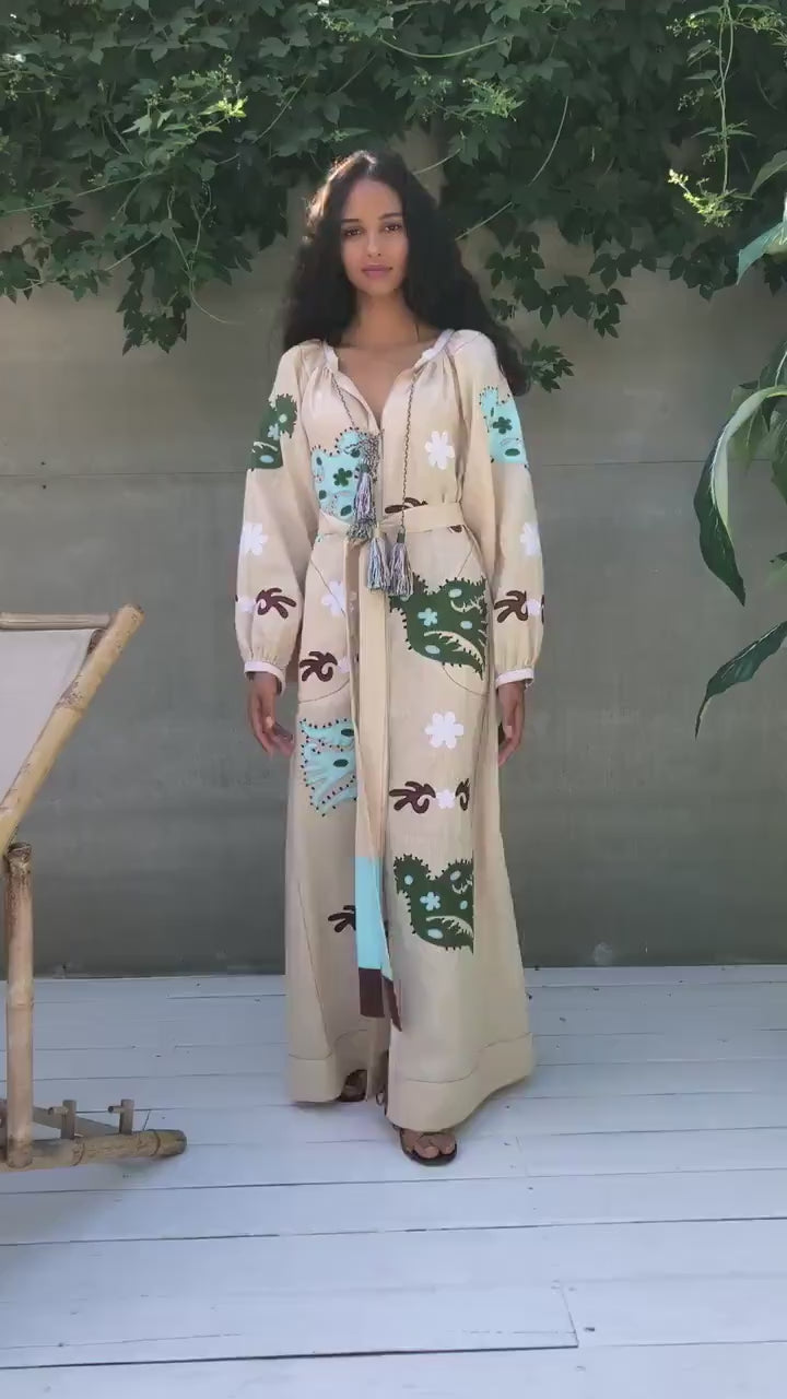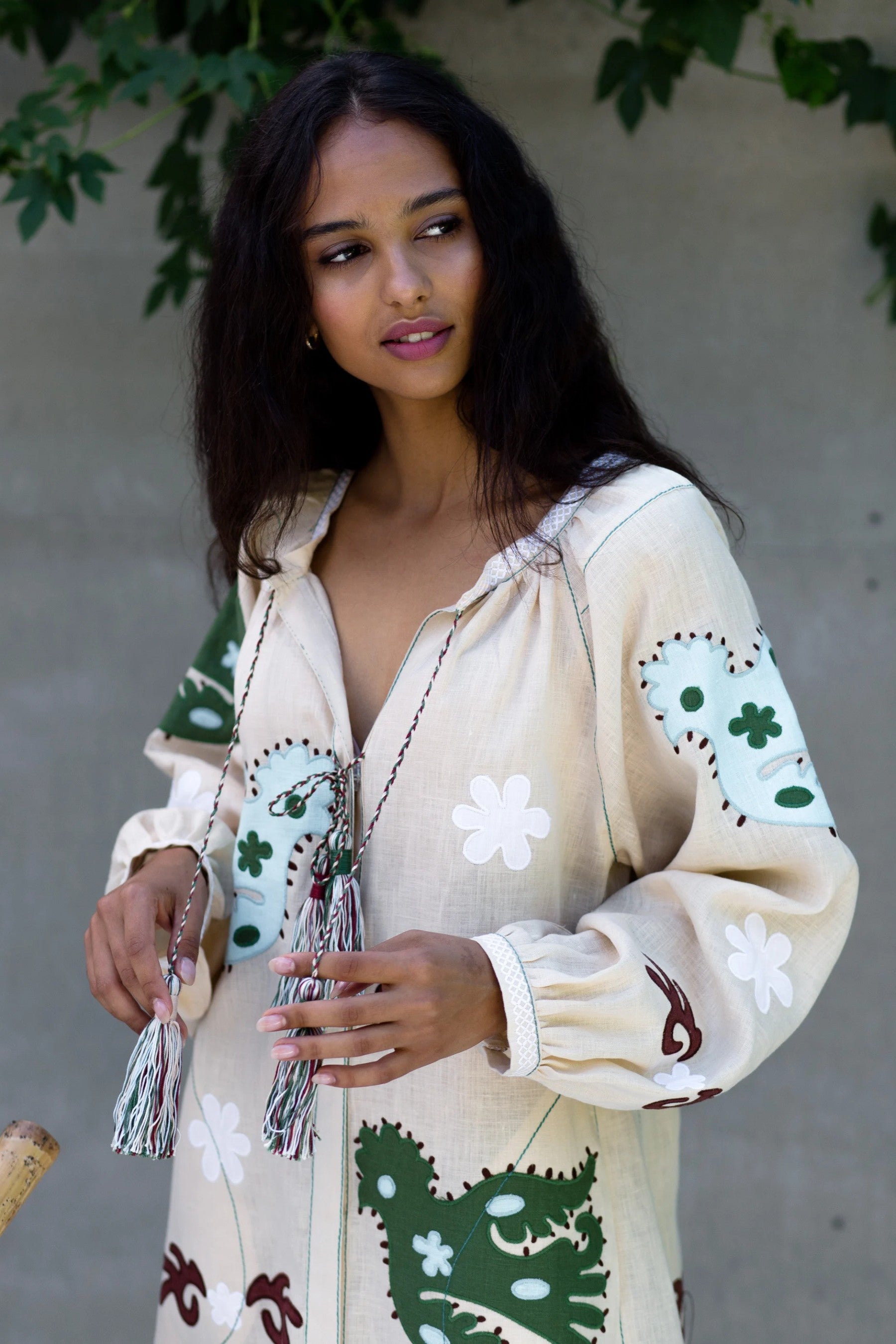 Experience style and culture with an embroidered linen dress. Handcrafted in Ukraine, it's perfect for any destination or resort getaway, and can be customized in color and length. Ideal for weddings and vacations.