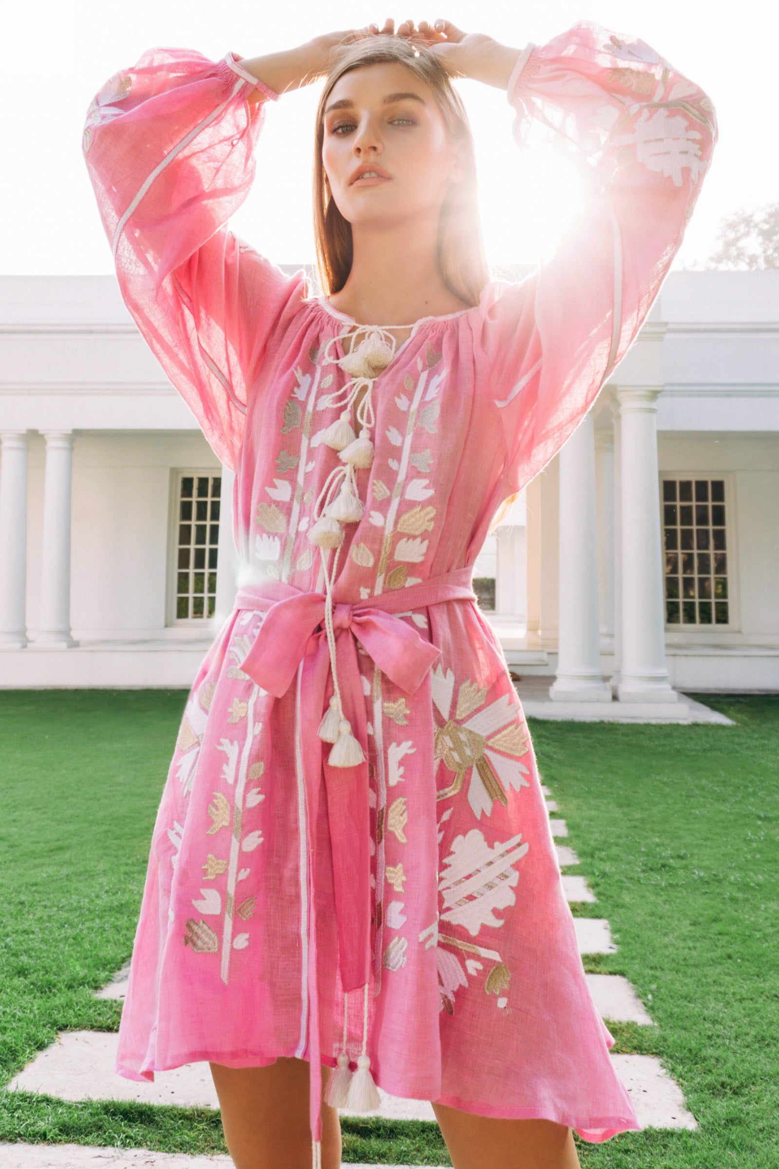 Gorgeous vyshyvanka dress, boho chic dress crafted from pink linen with pockets and tassels at V-neck. One-of-a-kind vyshyvanka available to order in any colors or length. Plus size linen boho dress pink, Ukrainian embroidered tunic We love ukrainian dresses and we made each embroidered tunic with great attention, patience and care. We appreciate our customers and there are only images which were made with our own garments.