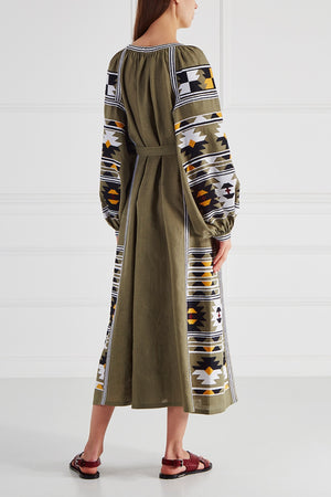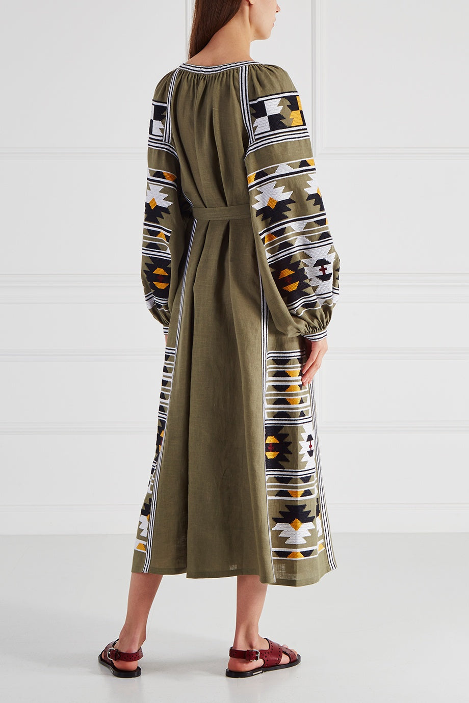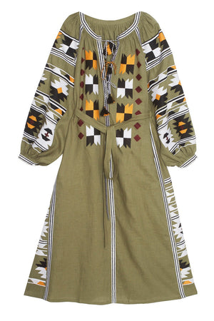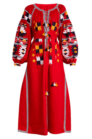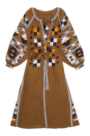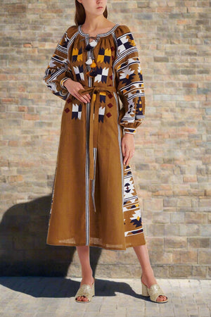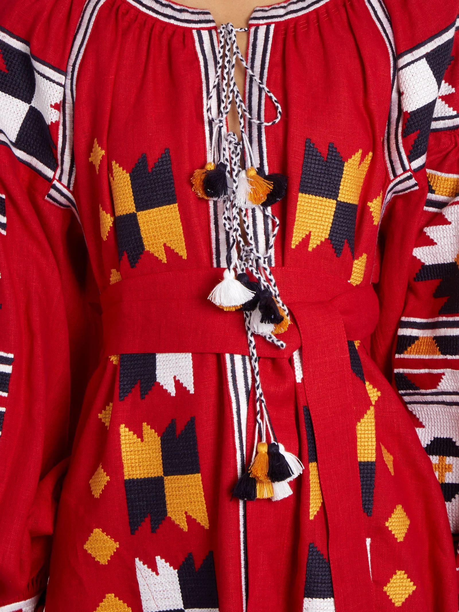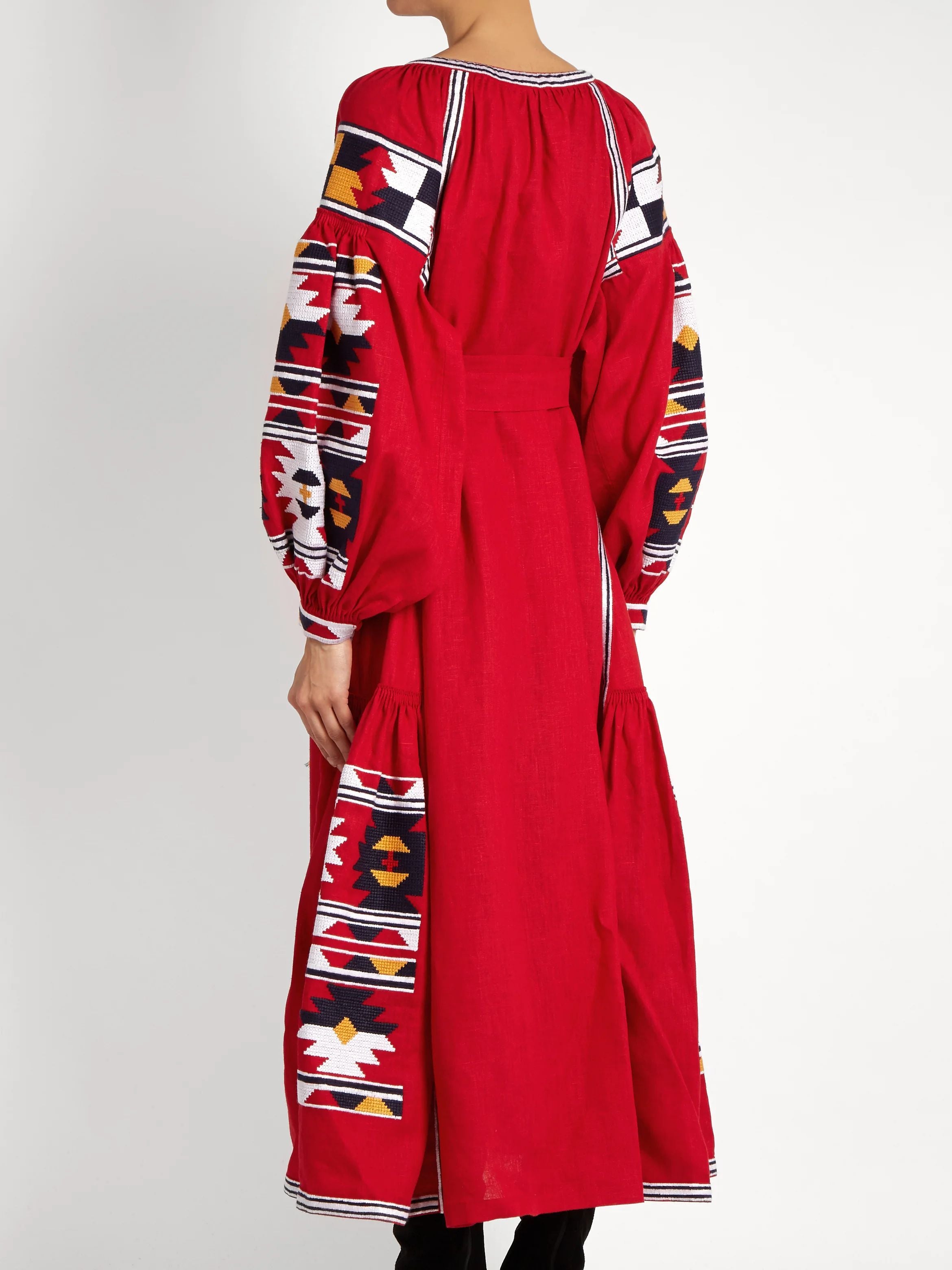 This gorgeous linen maxi dress boasts expert craftsmanship, highlighted by intricate bohemian embroidery and a V-neck adorned with charming tassels. Its versatile design allows for customization of both color and length, making it an ideal summer kaftan robe.