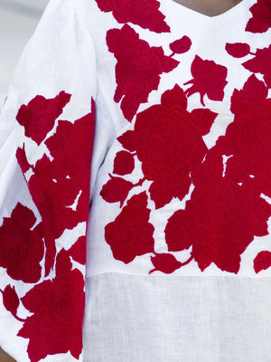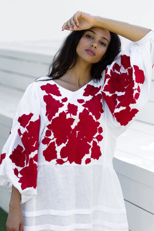 Roses embroidered linen dress Floral bohemian clothing