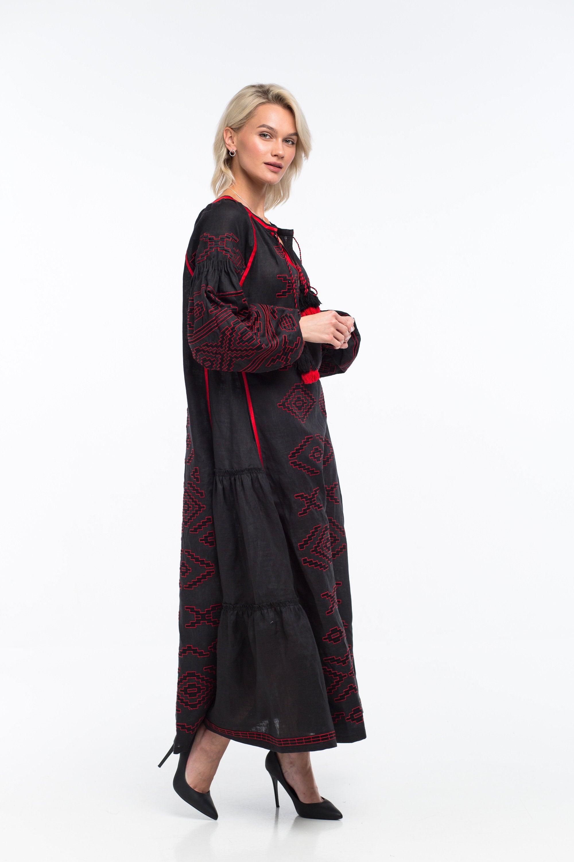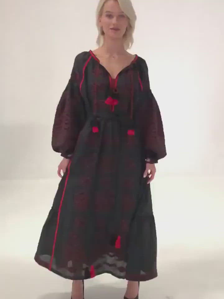 Serena embroidered dress Fashion robe with ukrainian ethnic embroidery