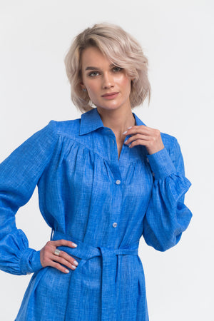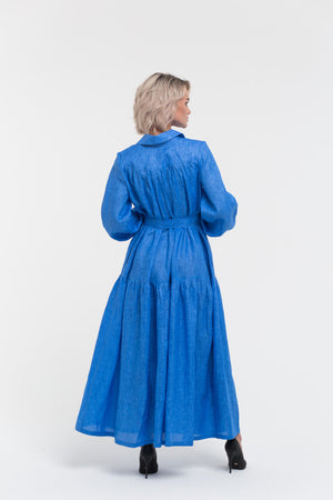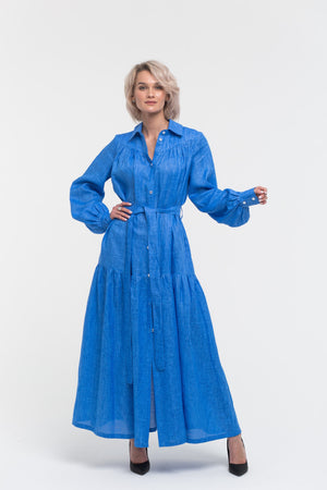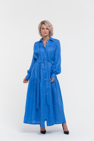 The linen maxi dress boasts a button down front and long sleeves, while still maintaining a fashionable bohemian vibe. You have the option to personalize the color and length of this kaftan dress to your liking.