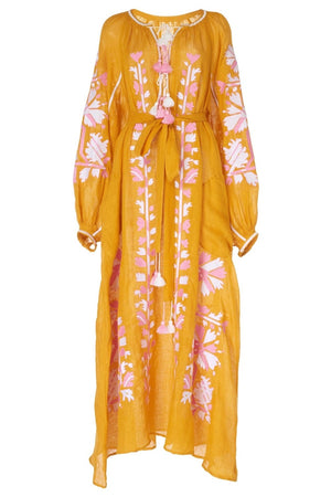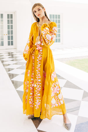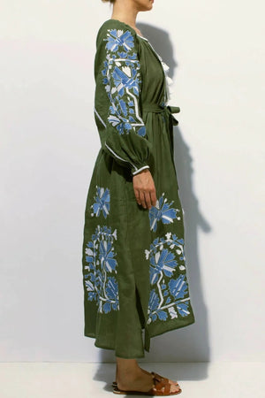 Embroidered linen maxi dress with floral embroidery Tina