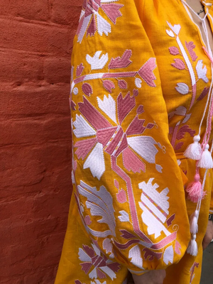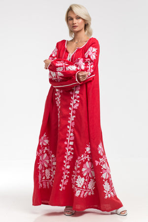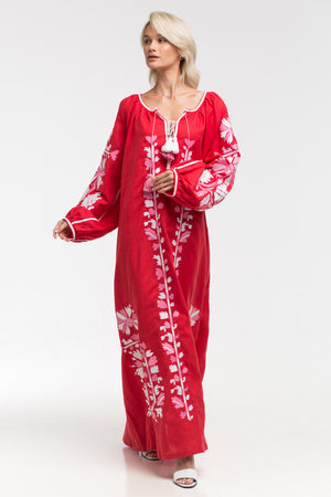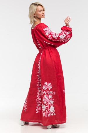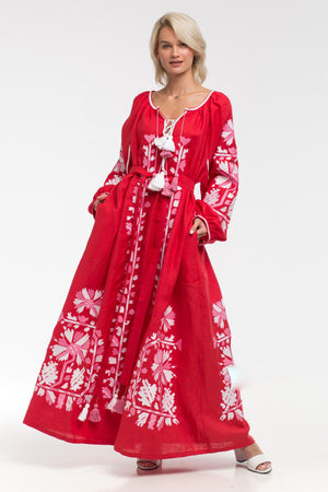 Immerse yourself in cultural diversity with the stunning embroidered linen maxi dress. Crafted by expert artisans from Ukraine, this dress features intricate floral embroidery and bold patterns, ideal for all your summer events and social gatherings.