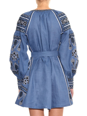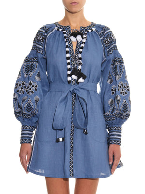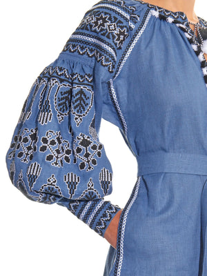 Ukraine boho dress blue Vyshyvanka Embroidered fashion bohemian gown