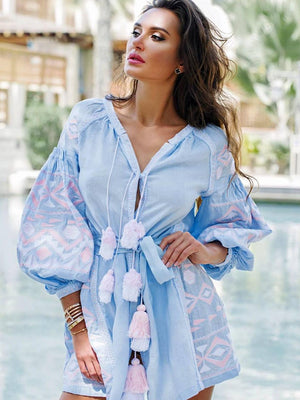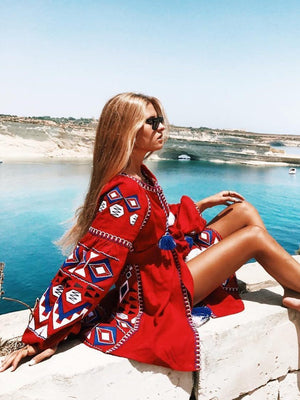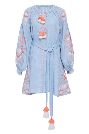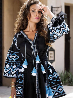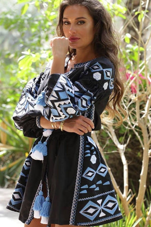 Embroidered vyshyvanka mini dress with pockets Bohemian clothing