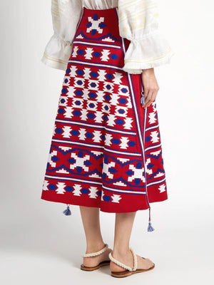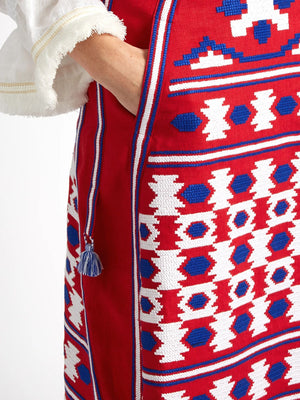 Sale price$199.00 USD - Ethnic embroidered red linen skirt