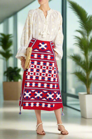 Resort outfit set with ethnic embroidery: Blouse & Midi Skirt