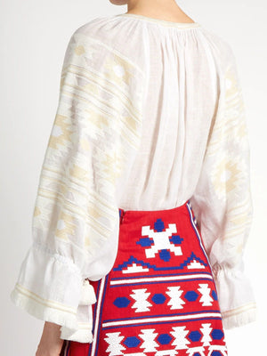 - White linen summer blouse Embroidered shirt top
